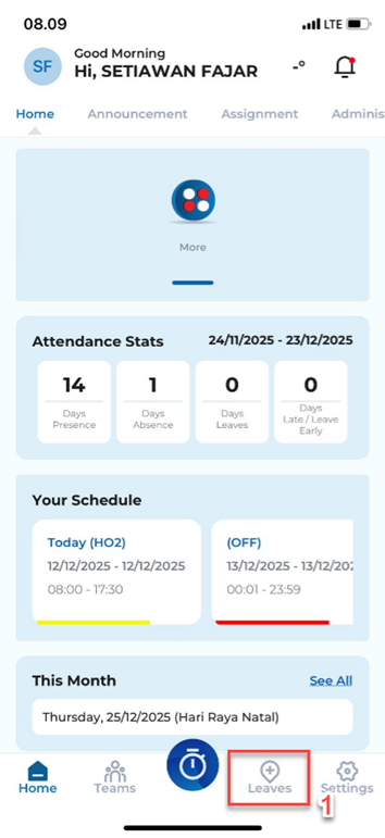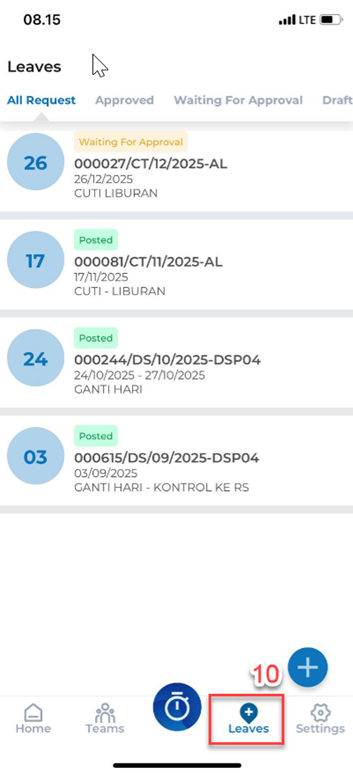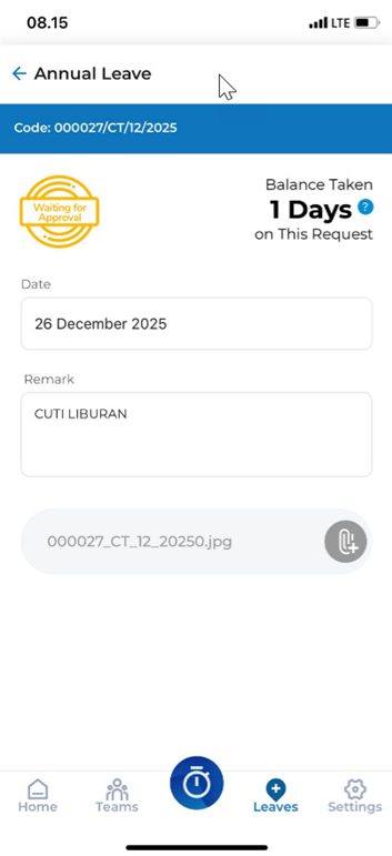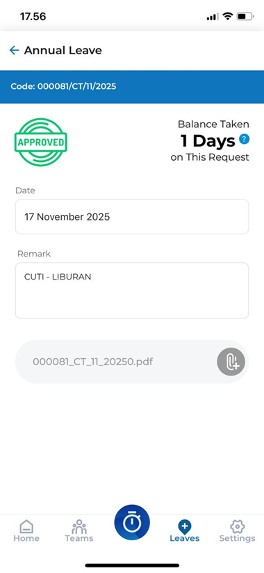 13. Beriku tampilan jika CUTI yang diajukan sudah di approved oleh tim payroll Head Office.