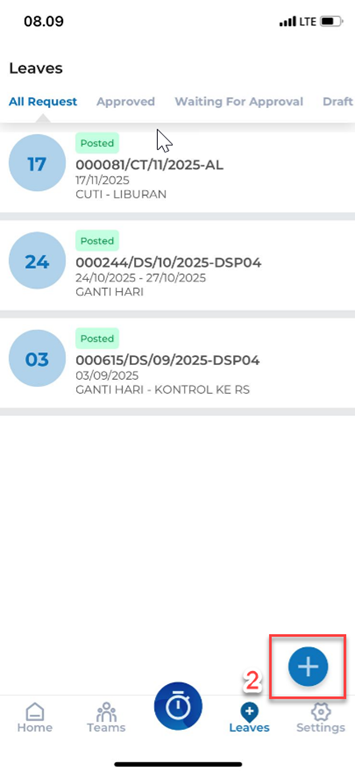 2. Klik tanda (+) untuk menambahkan CUTI.