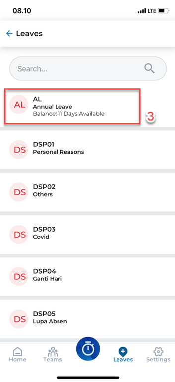 3. Pilih AL (Annual Leave) untuk mengajukan CUTI.
