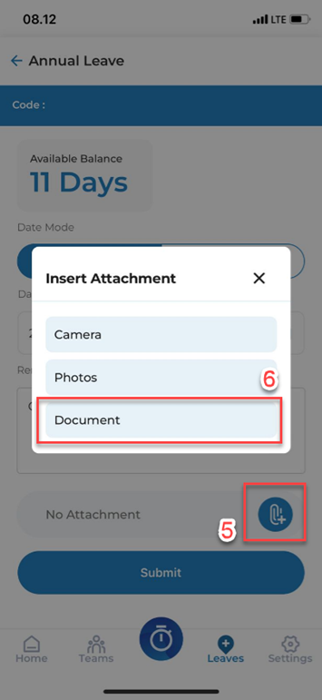 5. Klik tanda attachment untuk memasukan lampiran CUTI (maksimal 2 MB).